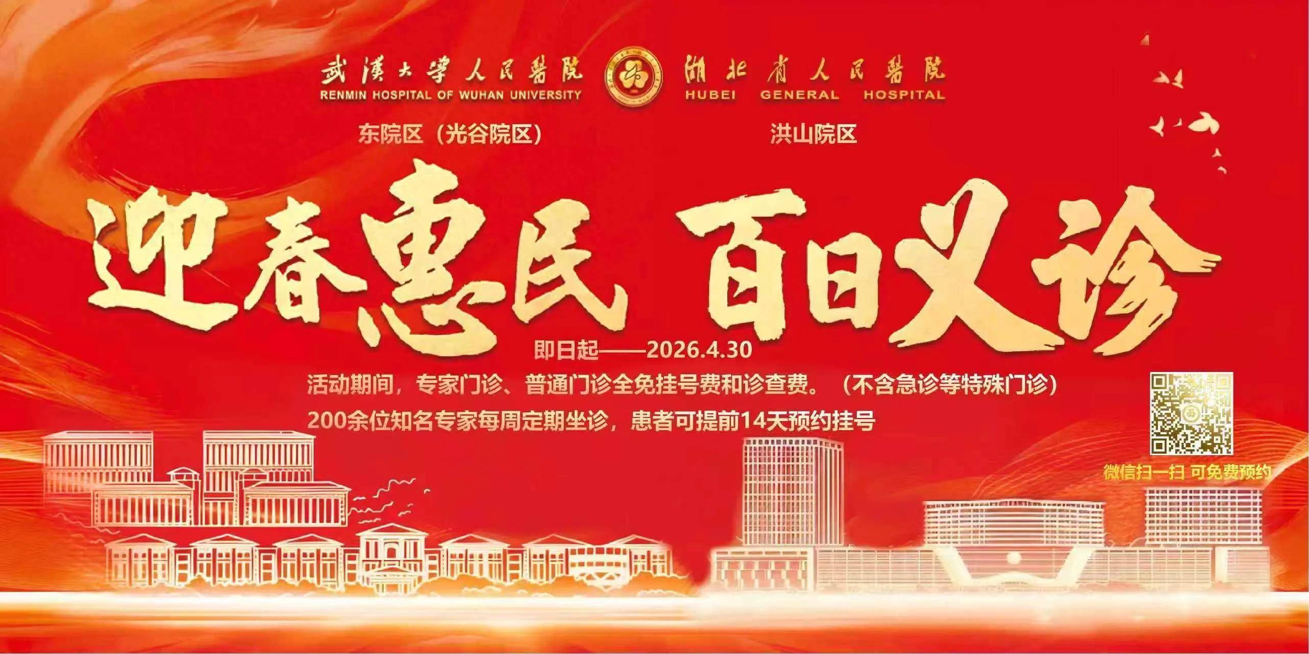 武汉大学人民医院(湖北省人民医院)门诊实行全预约制,市民通过“湖北省人民医院”官方微信公众号,可提前14天预约就诊。“迎春惠民·百日义诊”活动期间,市民如选择在“东院区”或“洪山院区”就诊时,预约成功后系统将自动免除挂号费与诊查费。