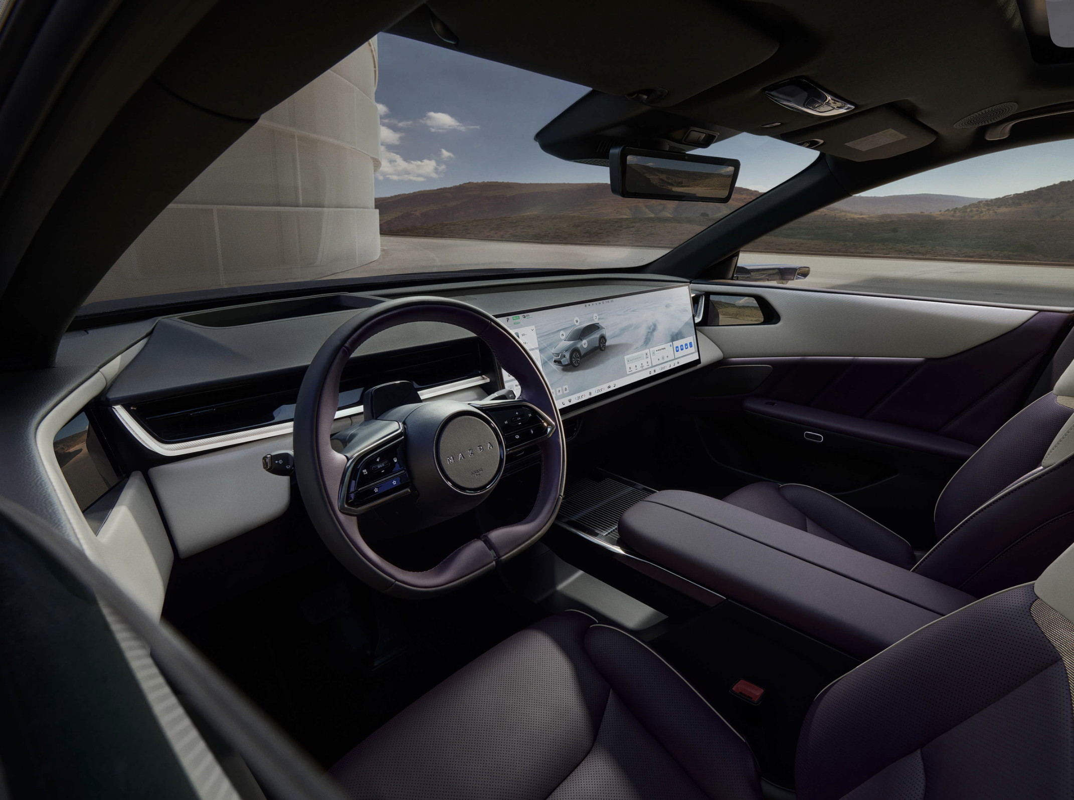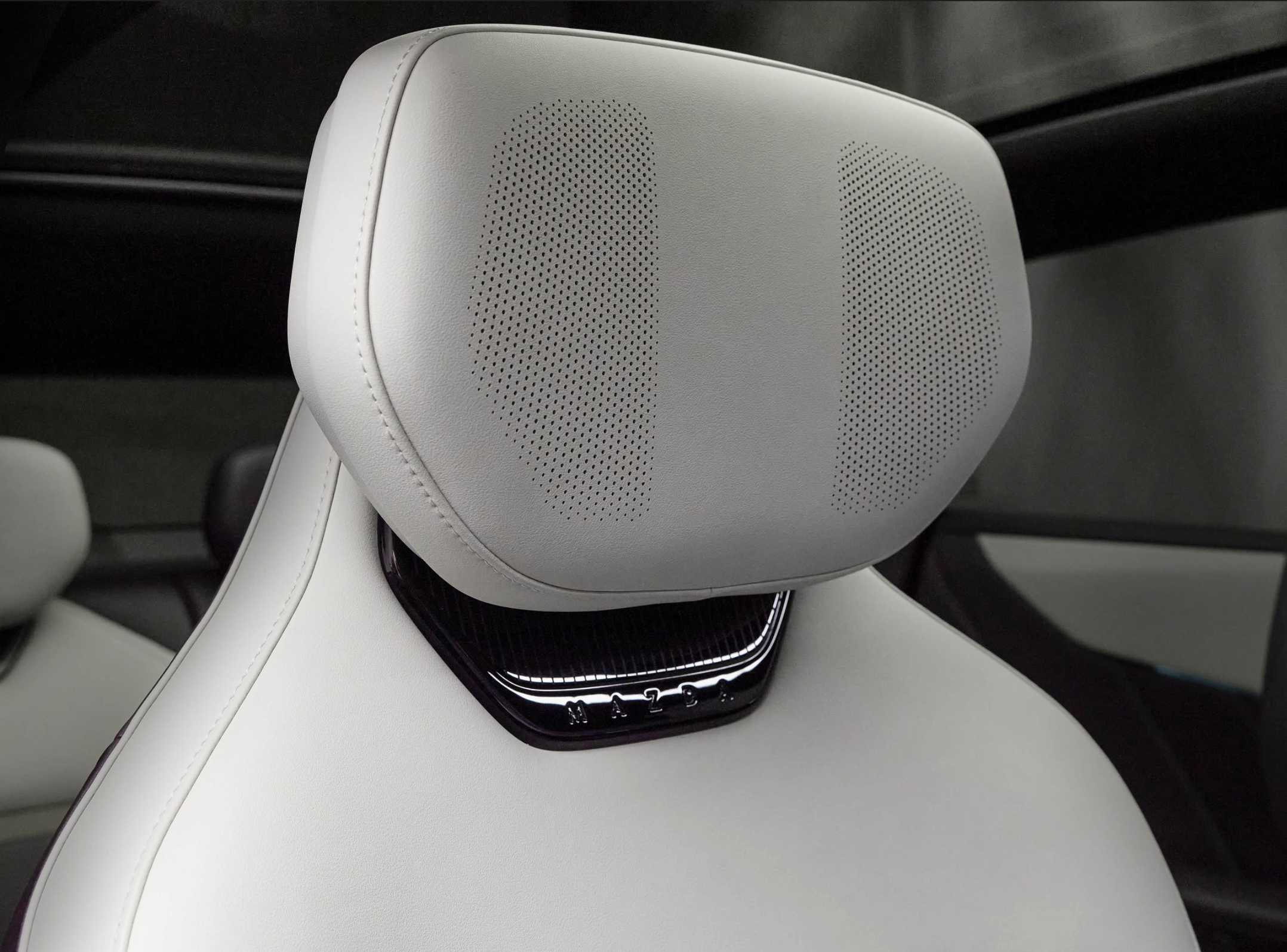 马自达CX-6e与国产马自达EZ-60保持一致,内饰采用了居家氛围浓郁的黑白撞色搭配。它运用了大面积Alcantara面料和皮革面料的铺陈,大量镀铬元素和运动座椅的加持,再配上带有换挡拨片的三幅式多功能方向盘,运动氛围更加爆棚。最大的亮点在于它配备的26.45英寸5K悬浮一体式屏幕,拥有50英寸高清AR-HUD,配置也相当丰富,像是一键启动、胎压监测、牵引力控制、车道偏离、前后探测雷达、刹车辅助灯系统,还是非常厚道。环抱式的座舱配备了平底式多功能方向盘和怀挡式换挡机构,也带拉了不一样的操控体验。配备的沙发座椅支持前排座椅加热/按摩、头枕扬声器及256色氛围灯,搭载由5个摄像头、5个雷达及12个超声波传感器组成的高级传感器网络。