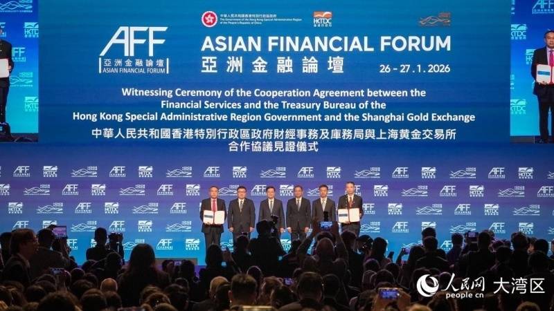 人民网香港1月26日电 (吴宇扬扬)在26日举行的第19届亚洲金融论坛上,香港特区政府财经事务及库务局与上海黄金交易所签订合作协议,推动沪港黄金市场合作迈向新里程。