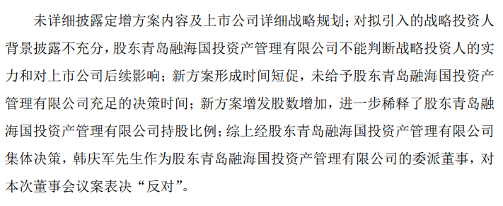 此外,其他议案的表决结果均为同意6票,反对1票,弃权0票,韩庆军也对这些议案投了反对票。
